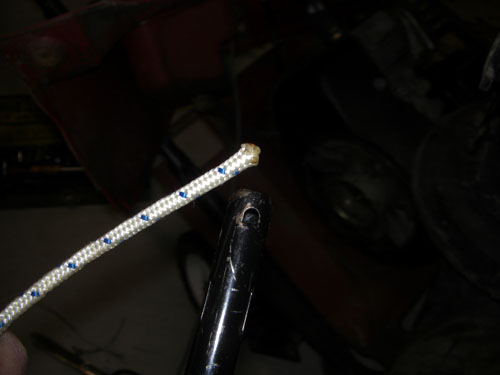 A bit hard to see here. I use a lighter to melt the end of the cord together. No more fraying.
