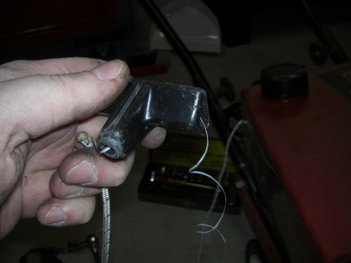 Same trick for the handle. Just run the floss though and tie it to the pull-cord.